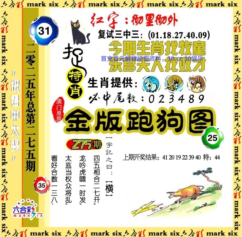 275期『四头爆中』❀『0234头』开:鸡45准 |