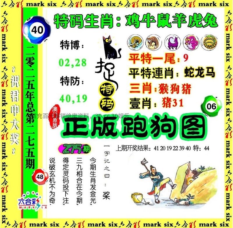 275期二肖 | 鸡狗 | 开:鸡45 |